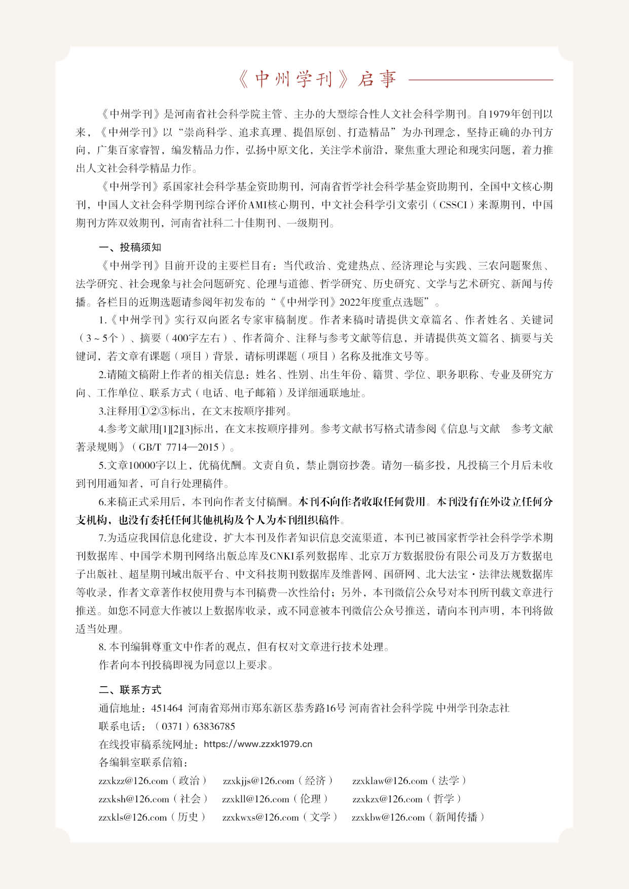 发布时间:2022-08-30 来源:中州学刊杂志社点击量:46010 作者:中州学刊杂志社